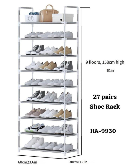 رف أحذية من 9 رفوف مع غطاء مقاوم للغبار