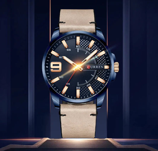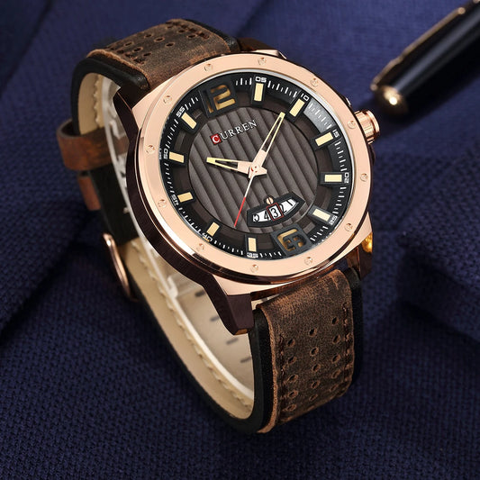 ساعة رجالية كوارتز بيد جلدية أصلية قوية ومتينة و مقاومة للماء