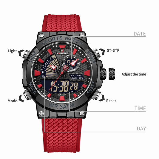 • ساعة رجالية بتقويم رياضي كوارتز يتوهج في الظلام