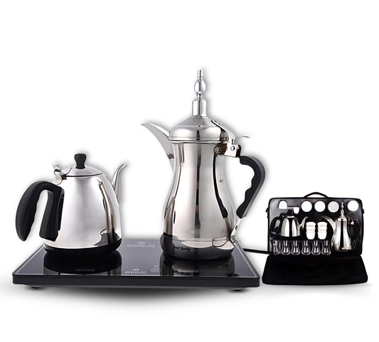دلة قهوة وإبريق شاي بالإضافة لدوّة تسخين