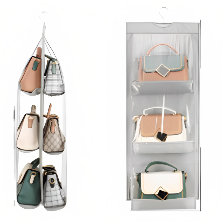 هذا المنظم لترتيب وتنظيم حقائب اليد بشكل مرتب ومنظم، من خلال تعليق المنظم علي الدولاب الخاص بك ثم وضع الحقائب عليه.