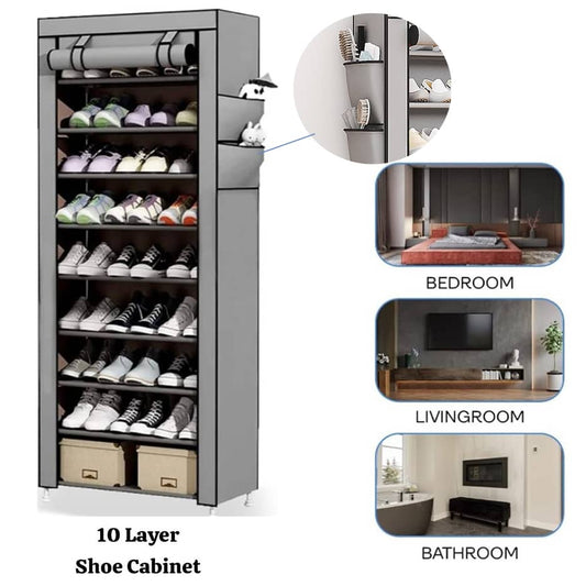 رف أحذية من 9 رفوف مع غطاء مقاوم للغبار